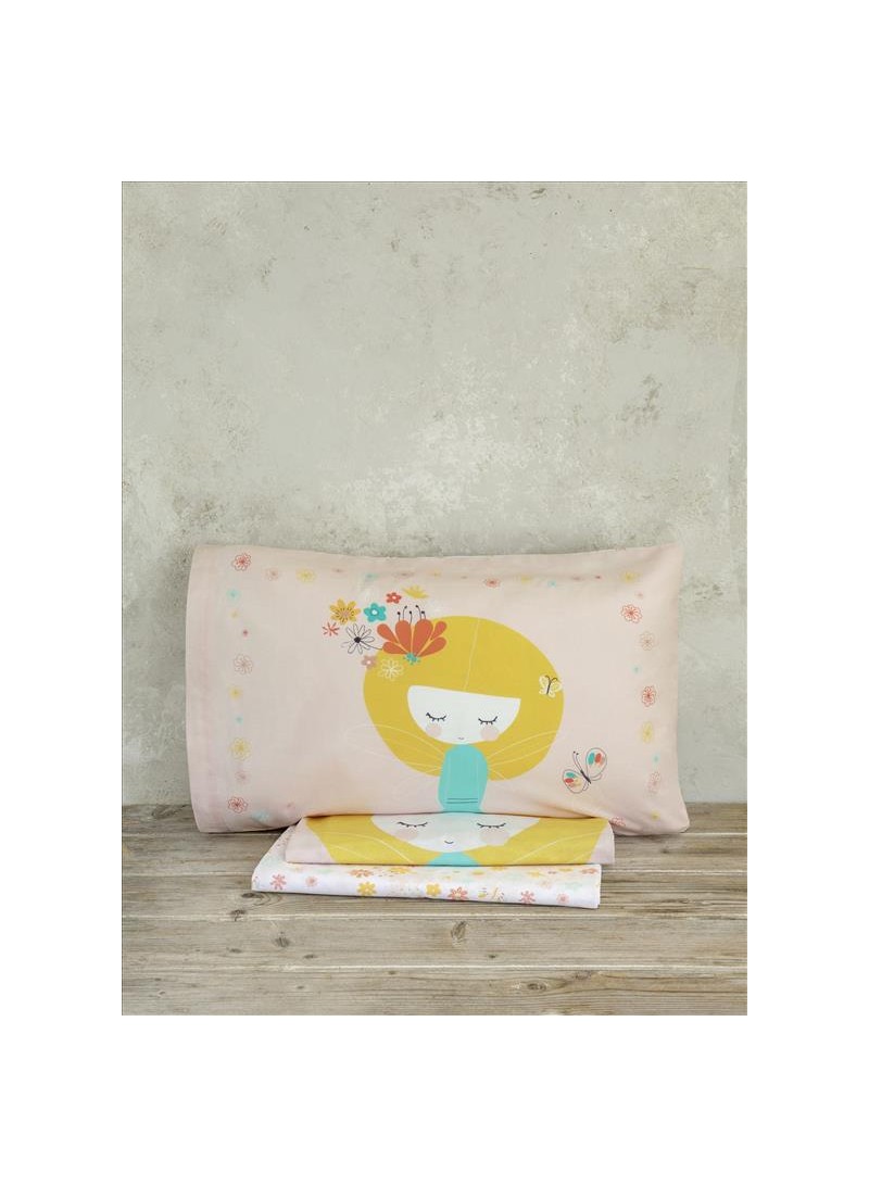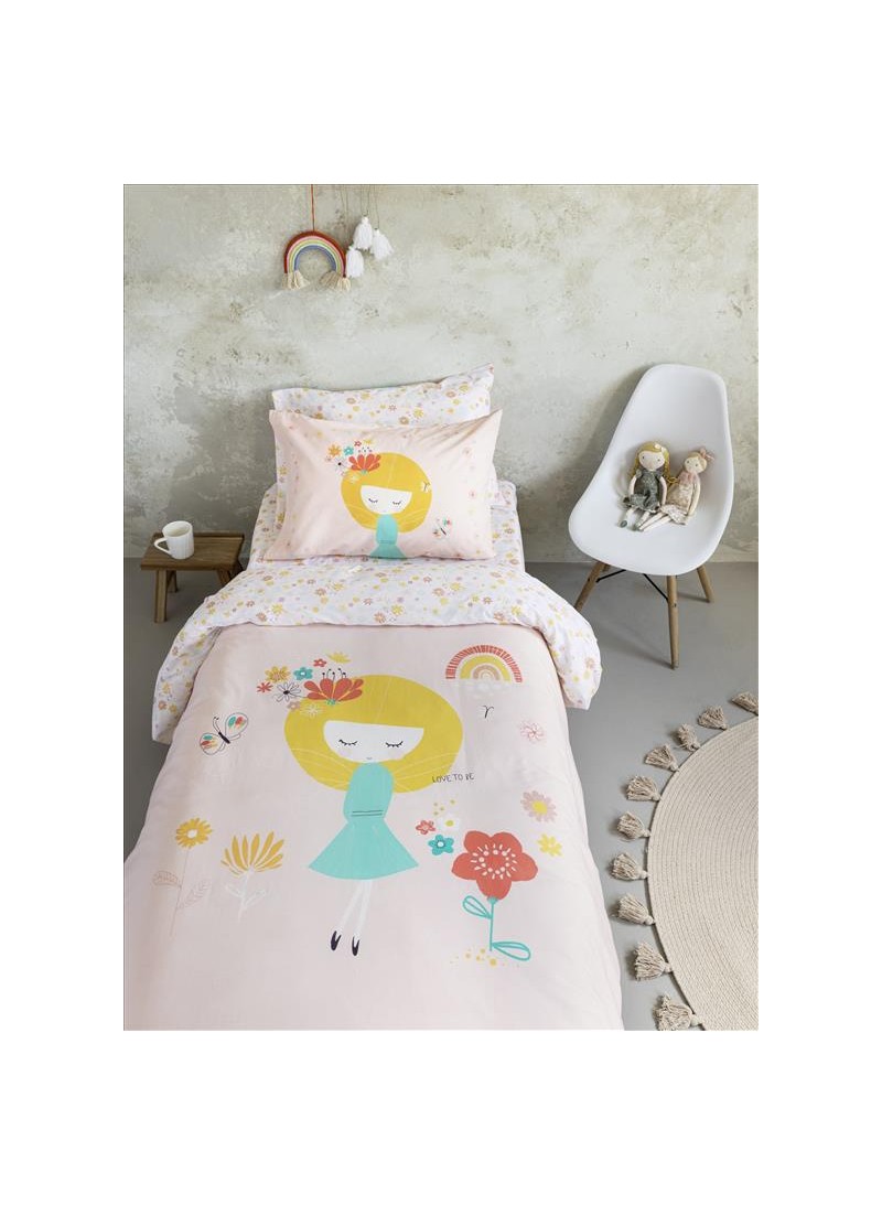 Τα παιδικά σεντόνια Fairy Love έχουν πανέμορφο τυπωτό σχέδιο με κοριτσίστικη φιγούρα περιτριγυρισμένη με πολύχρωμα λουλούδια, πεταλουδίτσα και ουράνιο τόξο και μεταφέρουν την μαγεία των παραμυθιών στο παιδικό δωμάτιο. Το απαλό πουδρέ ροζ χρώμα του φόντου της αναδυκνείει την όμορφη φιγούρα που έχει πρωταγωνιστικό ρόλο. Το πανέμορφο κατωσέντονο με τα πολύχρωμα λουλούδια αλλά και η πάνελ μαξιλαροθήκη, ενισχύουν την μαγεία και την παραμυθένια αύρα του σετ. Συνδυάστε τα με το ασορτί πάπλωμα για να δημιουργήσετε ένα ονειρεμένο παιδικό δωμάτιο.