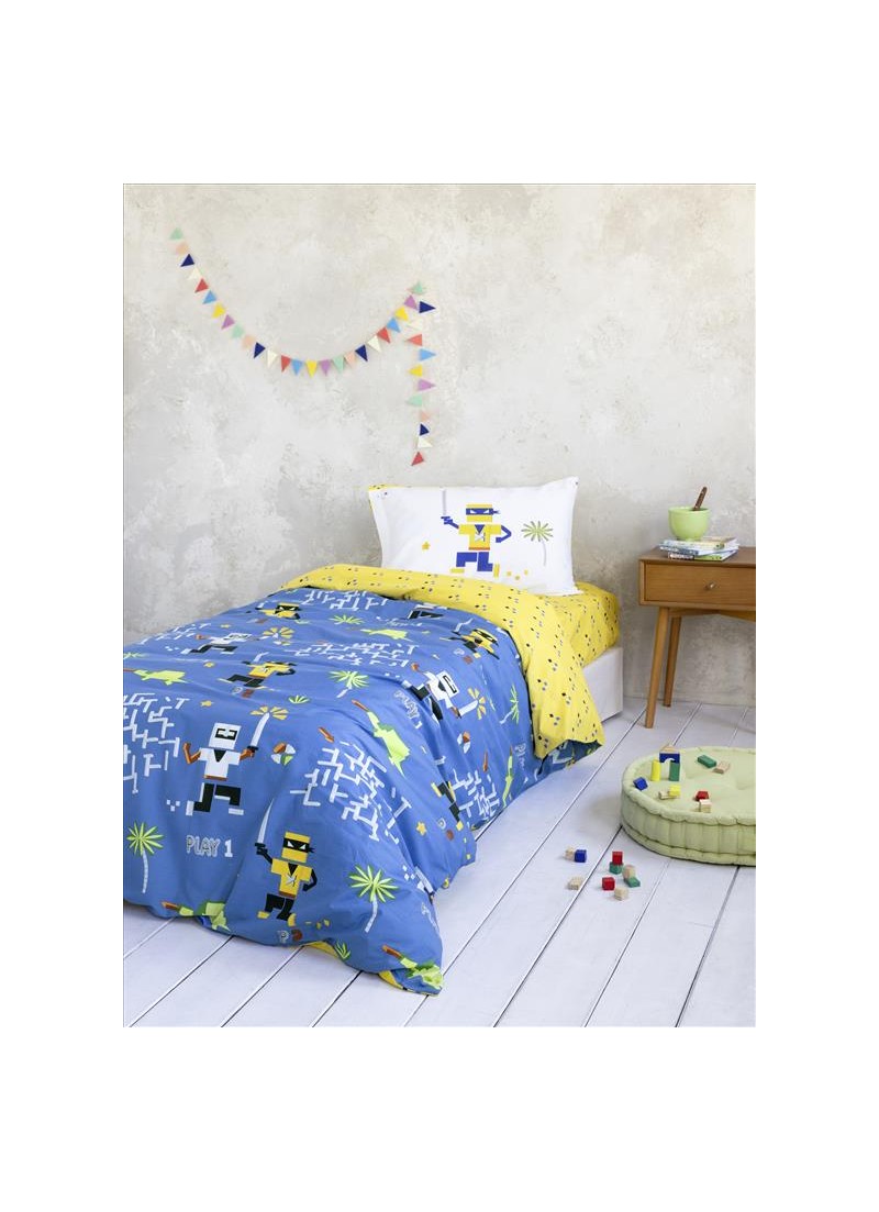 Τα παιδικά σεντόνια Atari έχουν ζωηρές αποχρώσεις του μπλε και του κίτρινου κι έρχονται για να ταξιδέψουν τα παιδιά στην περιπέτεια και στο παρελθόν. Με αισθητική που παραπέμπει στην κλασική παλιά παιχνιδομηχανή και διασκεδαστικούς ήρωες, αυτό το σετ σεντονιών θα κερδίσει αμέσως τις εντυπώσεις των παιδιών. Οι μαξιλαροθήκες του έχουν panel σχέδιο που ξεχωρίζει φέρνοντας τον αγαπημένο ήρωα ακόμα πιο κοντά στο παιδί. Ένα διαφορετικό σετ σεντονιών που θα φέρει παιχνιδιάρικη διάθεση και θα χαρίσει χρώμα στο παιδικό δωμάτιο.