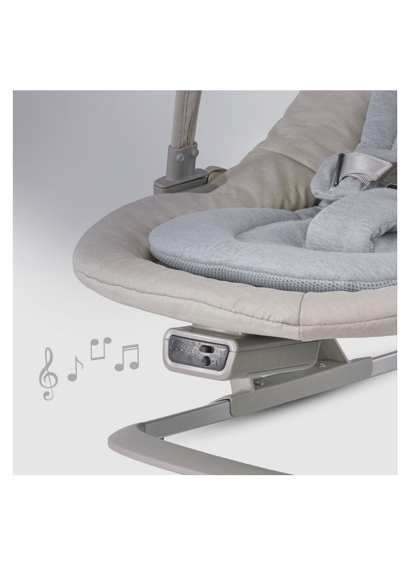 ΑΠΑΛΟ ΛΙΚΝΙΣΜΑΤο καμπυλωτό του σχήμα εξασφαλίζει ένα απαλό και ήρεμο λίκνισμα ενώ διαθέτει και μοχλό ασφάλισης - απασφάλισης.ΓΙΑ ΤΗΝ ΔΙΕΓΕΡΣΗ ΤΗΣ ΓΝΩΣΤΙΚΗΣ ΑΝΑΠΤΥΞΗΣΗ μπάρα με 3 ζωάκια, με μοναδικά χρώματα, ήχους και λεπτομέρειες μπορεί να κουμπώσει οπουδήποτε επάνω στο προϊόν ώστε το μωρό να παίζει σε οποιαδήποτε θέση κι αν βρίσκεται.ΕΞΑΙΡΕΤΙΚΑ ΑΝΑΠΑΥΤΙΚΟ ΓΙΑ ΤΟ ΜΩΡΟ ΣΑΣΑπαλή, πλούσια επένδυση με ύφασμα ζέρσευ που αναπνέει και διαπνέουσα ένθετη βάση για καλύτερη ροή του αέρα.ΜΕ ΜΟΥΣΙΚΗΕπιλογή μουσικής ανάμεσα σε 3 κλασσικές μελωδίες και ρύθμιση έντασης.