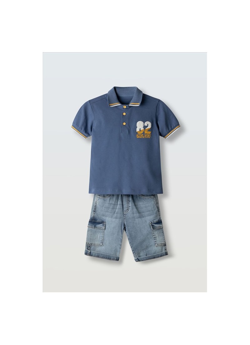 Σετ σορτσάκι τζην με μπλούζα πόλο Hashtag