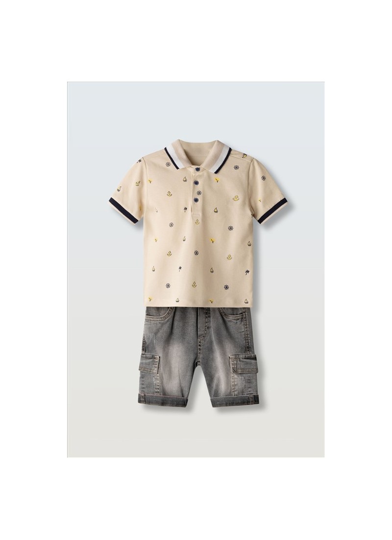 Σετ βερμούδα τζην με μπλούζα πόλο Hashtag